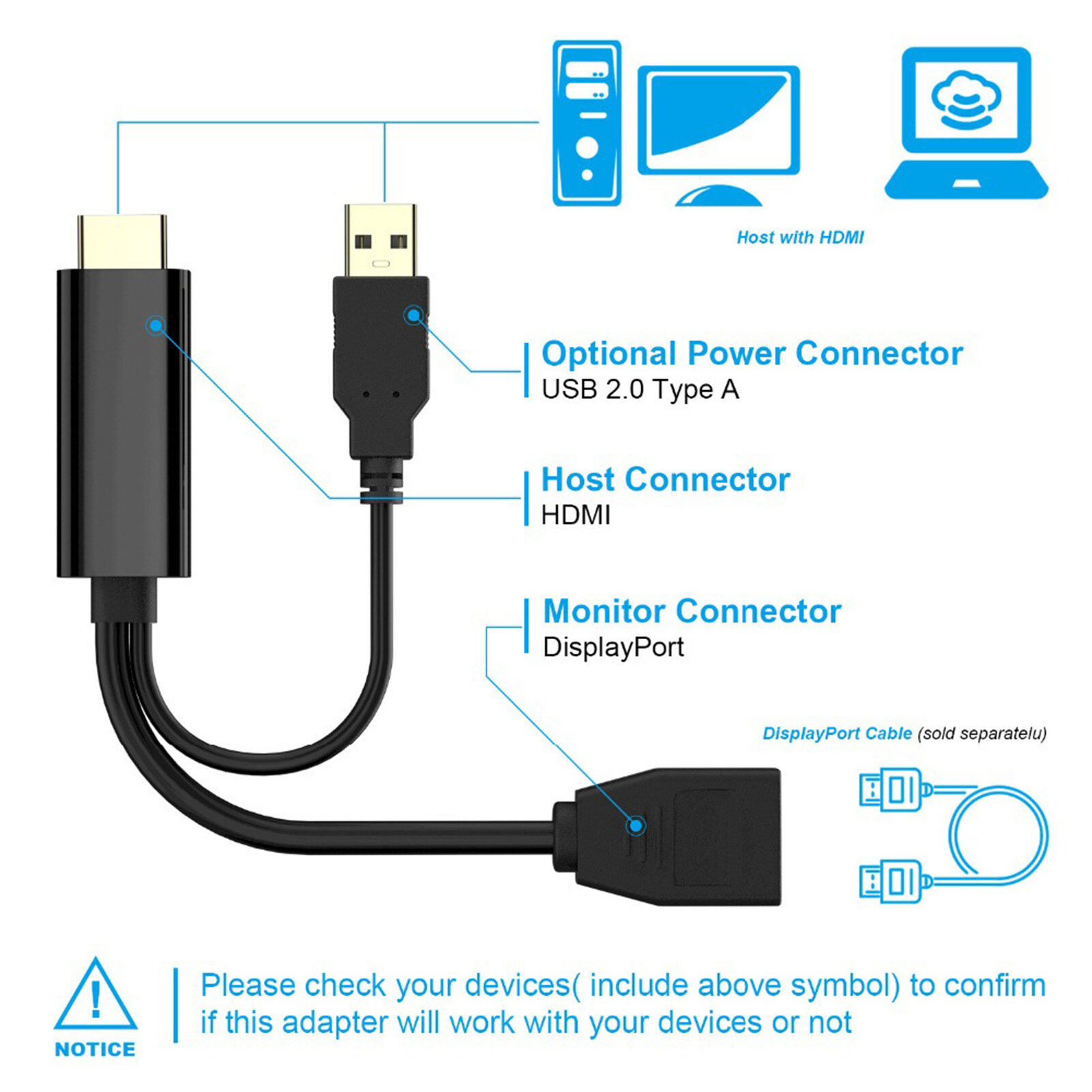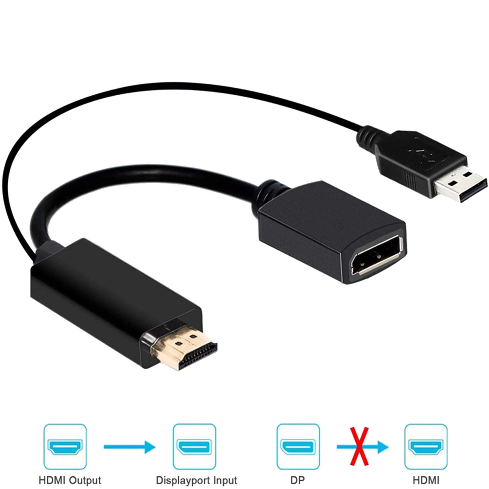 The adapter is not bi-directional. It only converts the HDMI output signal (source device) to the DisplayPort (monitor/monitor)