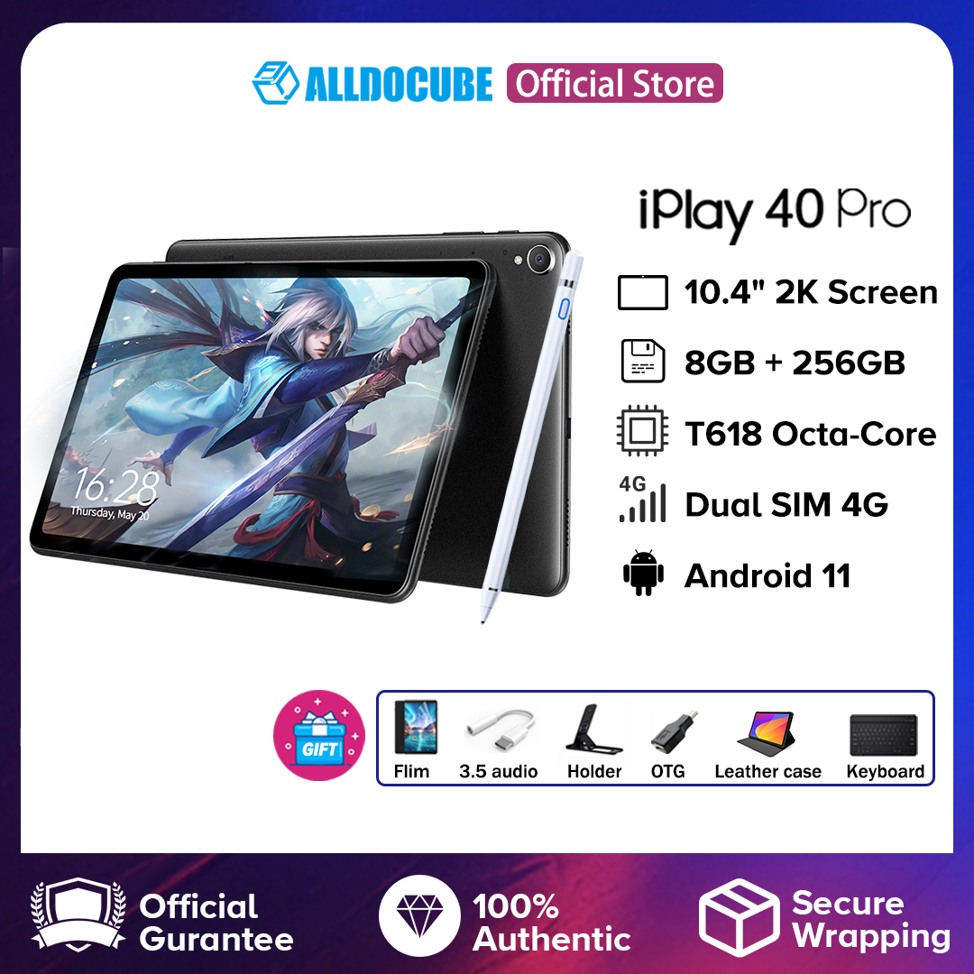 ⭐Alldocube iPlay 40 Pro⭐⭐Ready stock - Shipping out within 24 hours⭐⭐Global Version - Pre-installed Google Play⭐⭐Main Features:⭐10.4-inch 2K - Best viewing experience with FullView displayAlldocube iPlay 40 Pro uses a 10.4-inch 2000×1200 resolution FullView display. With only 7.8 mm slim bezel design, this large display provides you with a better viewing experience, whatever content you consume broadcast TV, YouTube videos, livestreams, or podcasts.⭐8GB RAM + 256GB ROMAlldocube iPlay 40 Pro with a large 8GB large-capacity LPDDR4X RAM and 256GB ROM, helps ensure games and video will play smoothly and quickly. If you need more space, it supports microSD Card up to 2TB⭐Capable and efficient Tiger T618 chipiPlay 40 Pro is armed with a powerful octa-core fast processing chip from UNISOC. Tiger T618 adopts a 12nm process technology and has 2 x A75 cores and 6 x A55. It also supports Android Neural Network API (NNAPI). T618 is not only amazing in performance, but also super power-saving.⭐UI based on Android 11 - More dynamic and easier to useEnjoy Android 11 updates and new features on iPlay 40 Pro such as chat bubbles, new notification features, screen recording, smart device control, media control, new privacy settings, and a bunch of others.⭐Four speakers, Smart PA, For theater like soundIn order to bring you a better listening experience, iPlay 40 Pro is equipped with powerful BOX sound cavity 4 speakers, with Awinic SMART power amplifier chip, bring you closer to the stories when watching your favorite movies, shows, and playing games.⭐Massive 6200mAhiPlay 40 Pro boasts a thin and light body, and features a powerful 6200mAh battery — so you can easily stream, work, and create without the pressure to find a nearby outlet.⭐Dual 4G LTE Internet/CallSupports TD-LTE and FDD-LTE dual 4G networks, adopts three-select two-card trays, and supports Dual SIM Dual Standby (DSDS), enhances the ability to work and stream media on the move.⭐Dual-band Wi-Fi/GPS/Bluetooth 5.0Supports 802.11ac high-speed dual-band Wi-Fi for reliable connections inside or outside. See what's around you and find your way with the built-in GPS capability. Connect accessories and transfer files wirelessly with Bluetooth 5.0.⭐8MP autofocus Rear camera + 5MP front cameraAlldocube iPlay 40 Pro is equipped with a 8MP camera with auto-focus, to catch every moment. And the front 5MP camera for video calls and Zoom conferences.⭐In-Cell technology - Immersive entertainment experienceEnhanced by high-end In-Cell full lamination technology it gives realistic images, sharper contrasts, dazzling brightness, and allows for more responsive touchscreen performance.⭐IMD magnesium alloy frame - Makes it light and durableiPlay 40 Pro also uses an in-mold injection-molded (IMD) magnesium alloy roll cage design, which makes the tablet firmer.⭐Global Version - Pre-installed Google Play storeDownland your favorite games and other apps from Google Play. The tablet is global verison, support multi language.