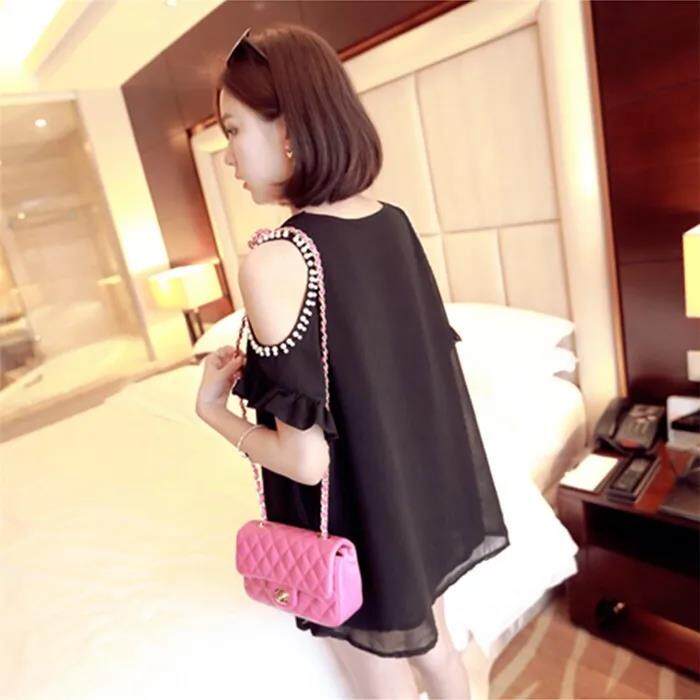 EDQRDQ Off Shoulder Plus Size Loose Tops for Women Ruffle Trim Short Sleeve Blouse Casual Chiffon Shirt