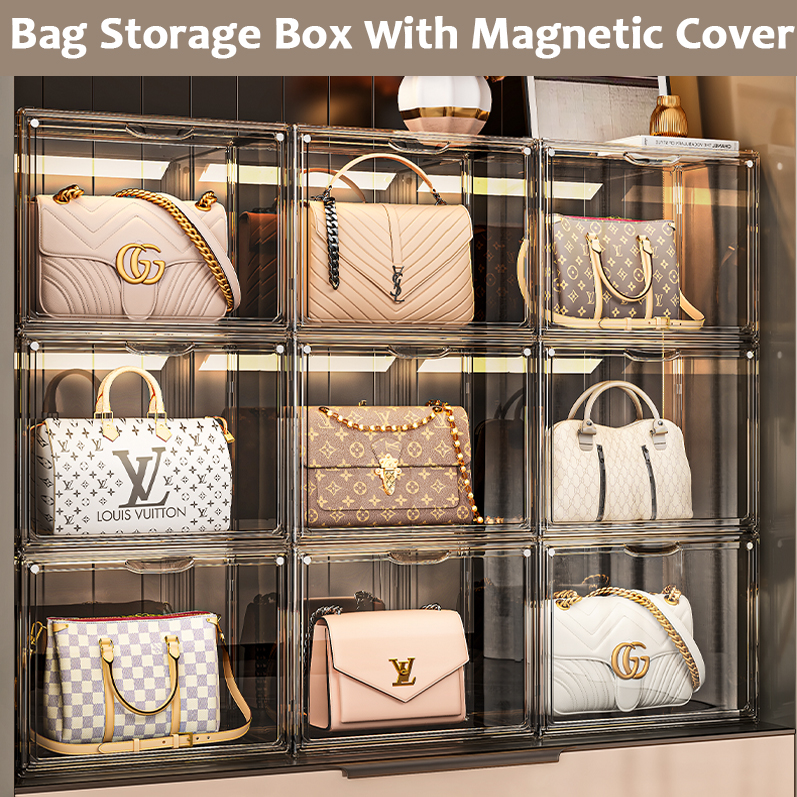 CORAL-Bag Storage Box With Magnetic Cover Handbag Storage Organizer