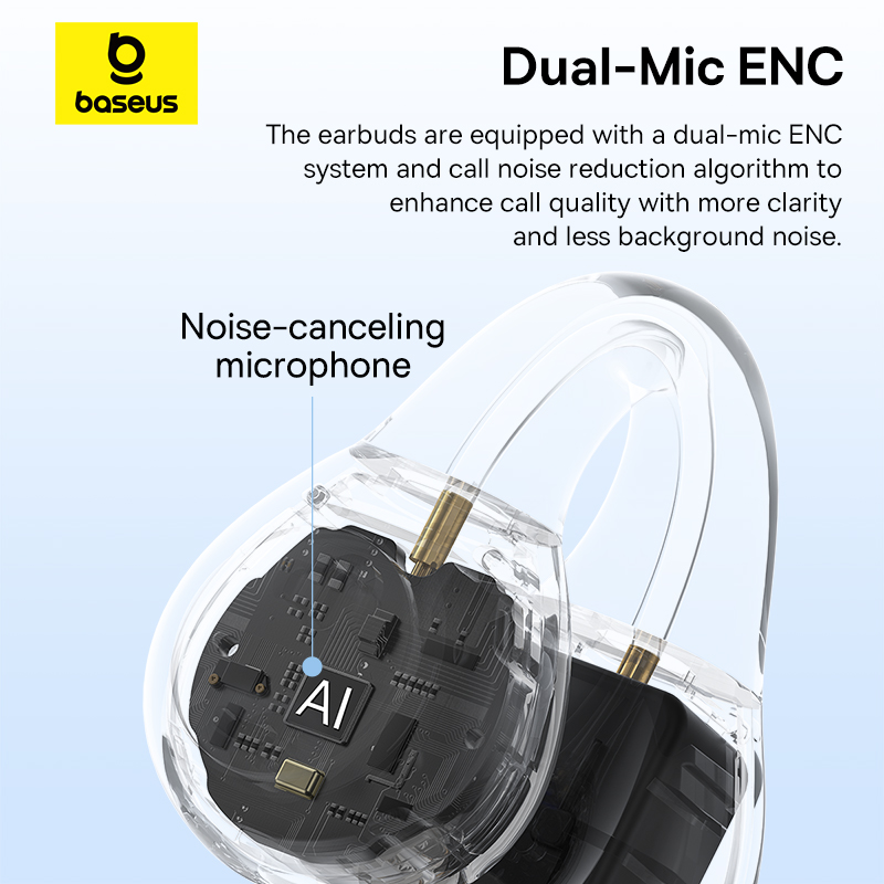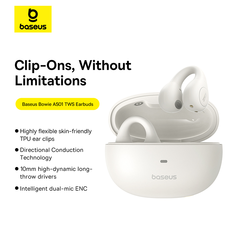 Baseus AirGo AS01 Clip On Open-Ear Bluetooth Wireless Earbuds With Dual ENC Mics Ultra-Lightweight Earphone