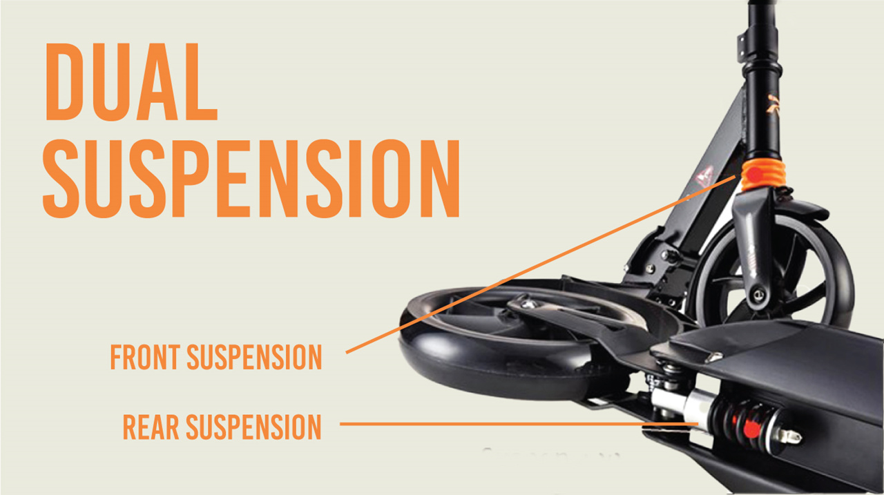 [Comfortable] Thanks to its dual suspension and handlebar brake.