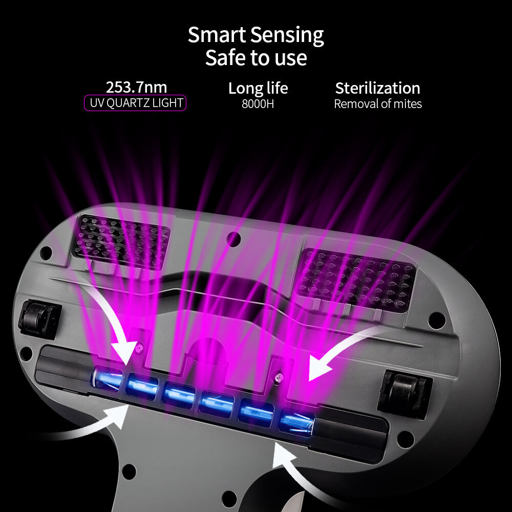 3. The UV light automatically stops working when lift up over 30 degree or away from the cleaning surface, avoid direct exposure and damage to human skin